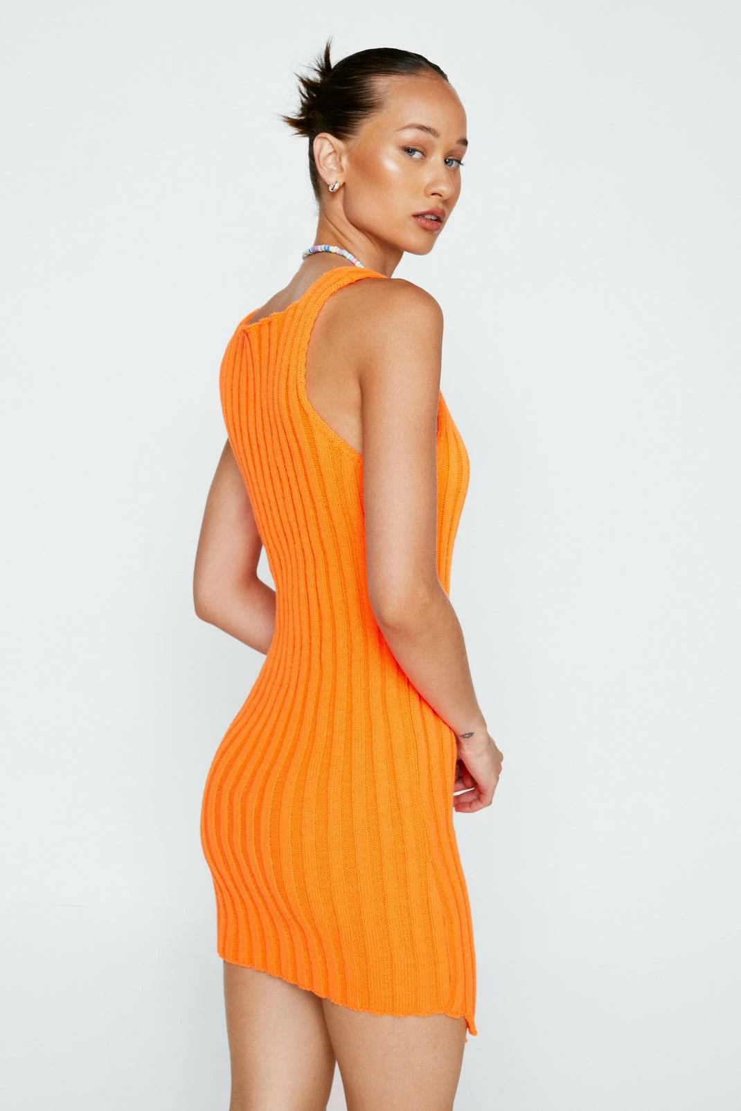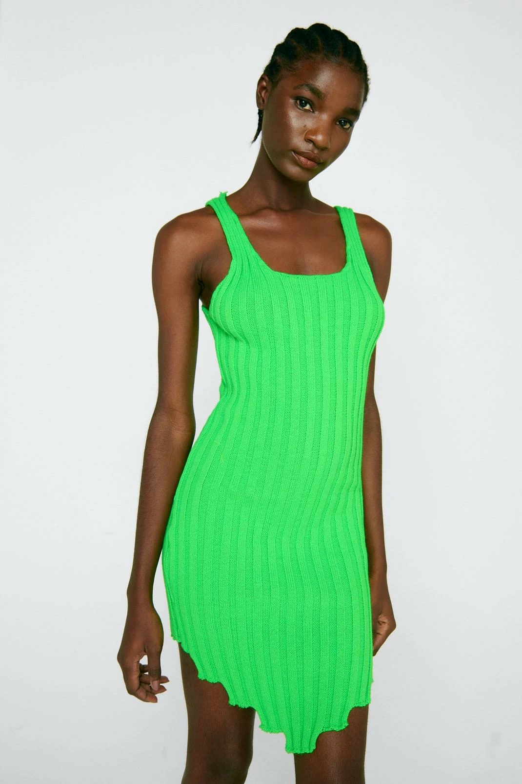 - Asymmetric Hem Ribbed Knitted Mini Dress