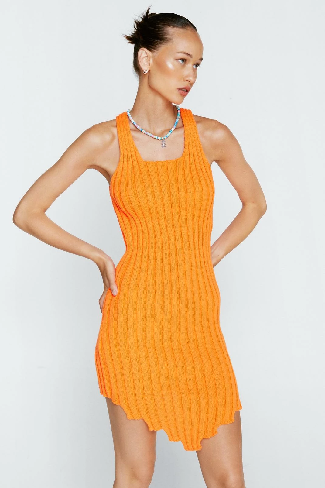 - Asymmetric Hem Ribbed Knitted Mini Dress