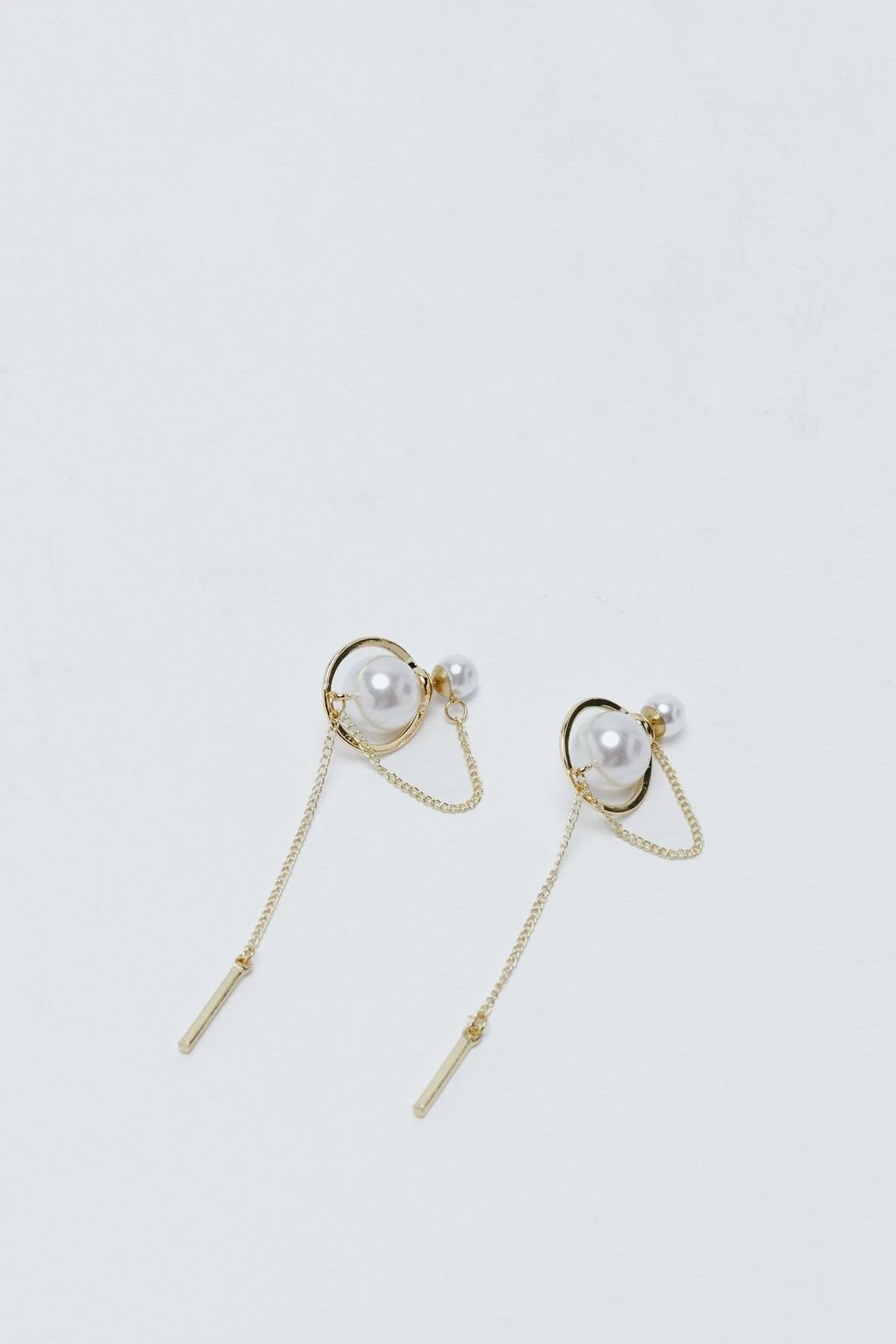Add some glamour. Feel femme in our pearl earrings, with large pearl accents, a smaller pearl backing, and chain drop detailing. Pairs well with your fave going out looks, perfect for finishing off your wedding guest look, adding some glam to your date night, and wearing to all your upcoming parties and occasions.