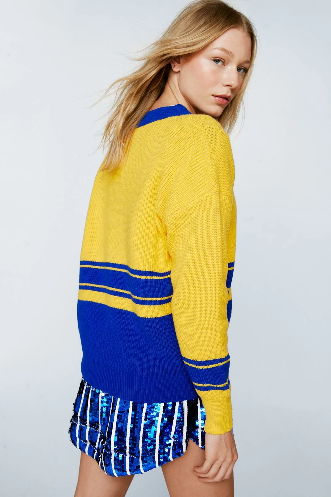 Sweater weather. Feel comfy in our V neck sweater, with an eye catching colorblock pattern in vibrant, contrasting colors, a flattering V neckline, and a relaxed fit. Pairs well with jeans and skirts for an elevated daytime look that will take you anywhere from casual coffee runs and after office drinks.
