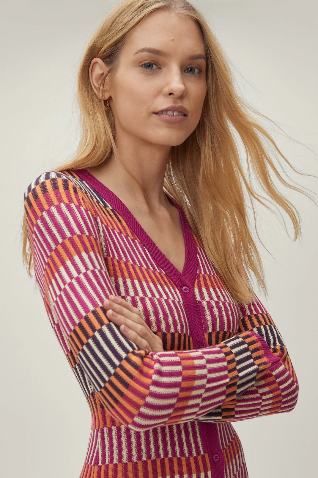 Stripe out. Feel ready to seize the day in our midi dress, with a classic stripe pattern, button front fastening, high quality knit fabric, and a flattering fit and flare design. Pairs well with chunky boots for an elevated look that will take you seamlessly from day to night, whether you’re heading to the office, brunch, or for dinner and drinks.