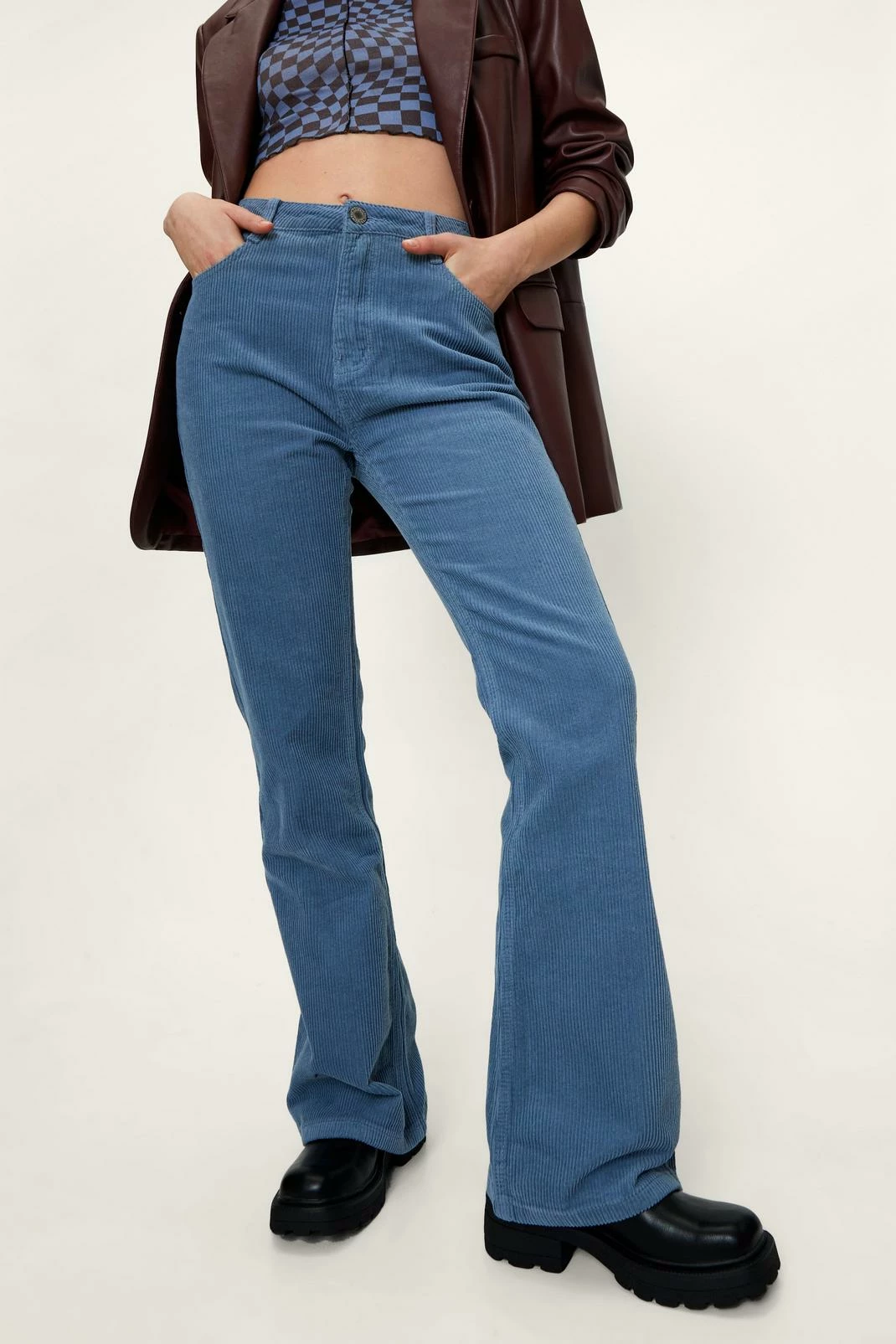 Laidback legwork. These pants come in robust corduroy and feature a fit and flare silhouette, high waistband with belt loops, concealed zip down fly closure, full length leg, and pull on design. A versatile piece to seamlessly integrate into your capsule closet. Wear yours with oversized blazers, playfully printed mesh, and cleated Chelsea boots.