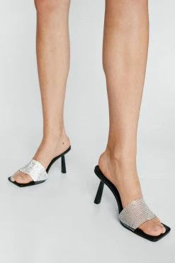Step right up. Feel fierce in our heeled mules, with a sparkling diamante strap and a slim, stiletto style heel that adds height and demands attention. Style with jeans to elevate your everyday looks, whether you’re going for brunch, or out for dinner and dancefloors.