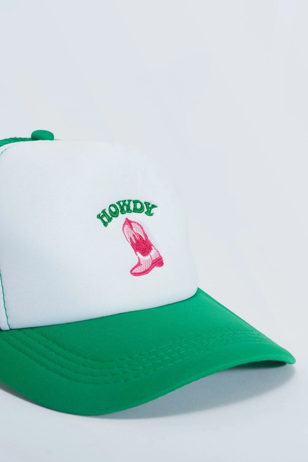 Howdy partner. Feel cute in our trucker hat, with a cute pastel colorway and colorful cowboy boot embroidery. Pairs well with your fave daytime looks, perfect for casual days out and festival weekends.