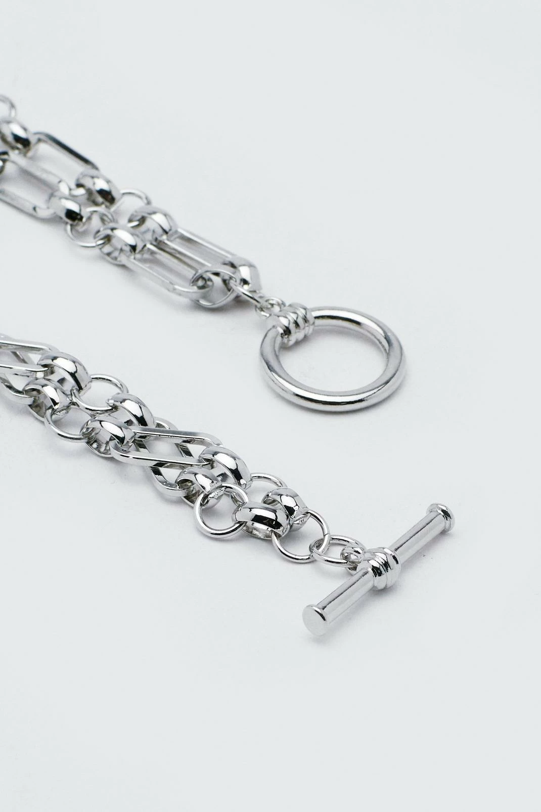 All chained up. Feel edgy in our chain necklace, with a toggle front fastening and layered chain detailing. Pairs well with your fave outfits for a detailed look that will turn heads, whether you’re heading to the office, going for a date night, or heading to a festival or gig night.