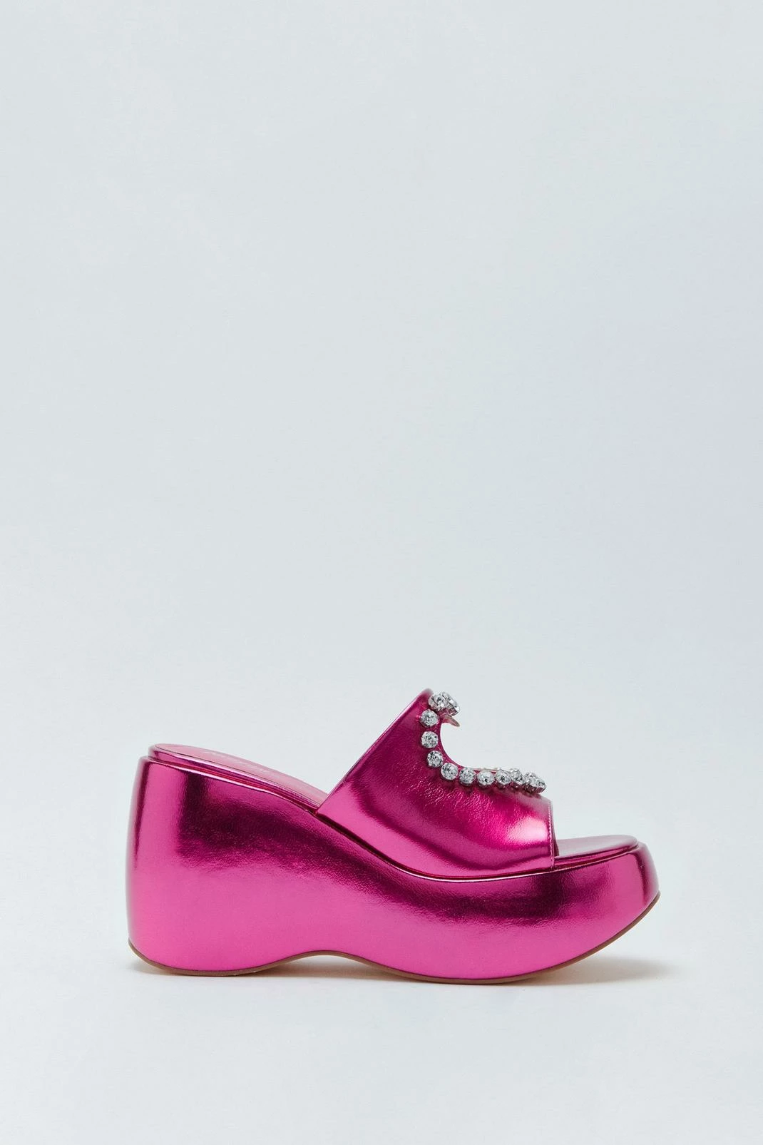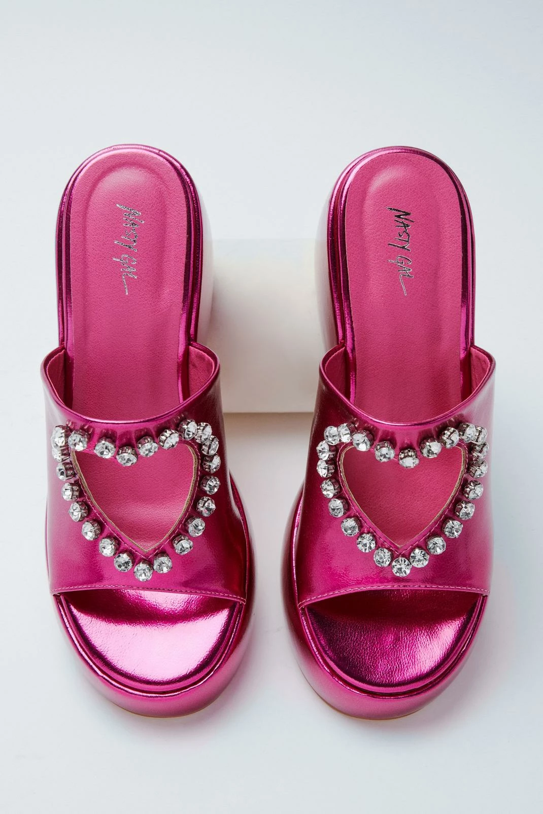 Treat your toes. Feel fierce when you slip into our platform sandals, with an extreme platform sole, heart cut out detailing, and sparkling diamante accents, in an easy to wear slip-on design. Pair them with anything from jeans to mini dresses, perfect for wearing anywhere from party nights and disco ball dancefloors to dinner dates and happy hour catch ups.