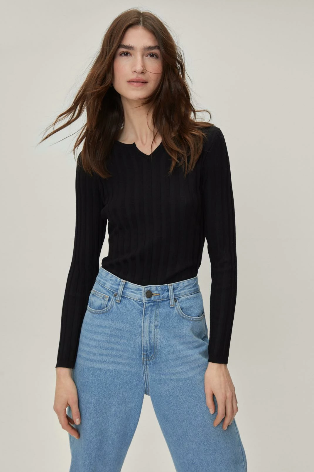 Rock your body. This versatile ribbed knitted bodysuit features a high neck with notch detailing, fitted, high leg silhouette great for elongating the legs, cheeky bottom coverage, long sleeves, and snap closures. The kinda closet basic which is always good to have around.