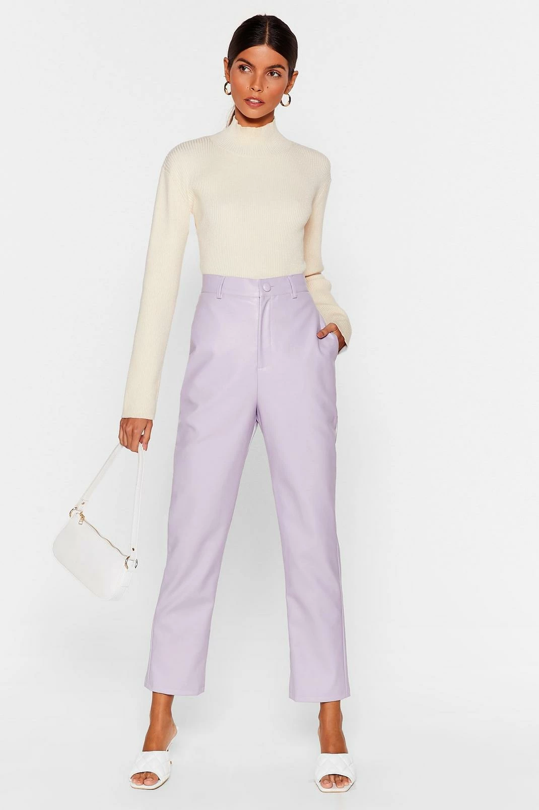 We knew you wouldn’t be away for long xoxo. This top comes in a ribbed knit and features a turtleneck, fitted, cropped silhouette, and open back with tie closure. Style with high waisted jeans and faux leather, stiletto mules. Model is 5’9″ and wears a US size 6/UK size 10.