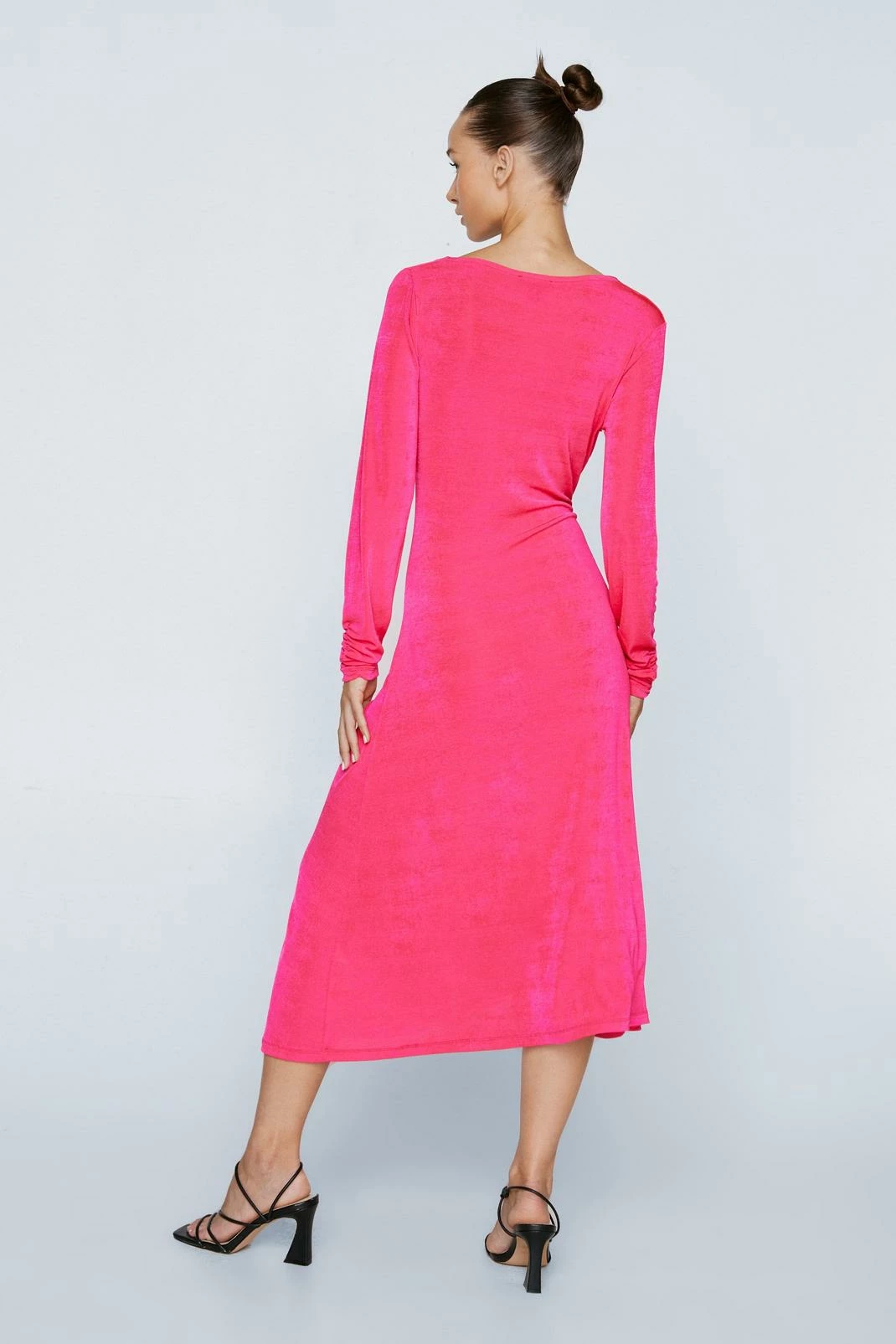 - Petite Ruched Front Long Sleeve Midi Dress
