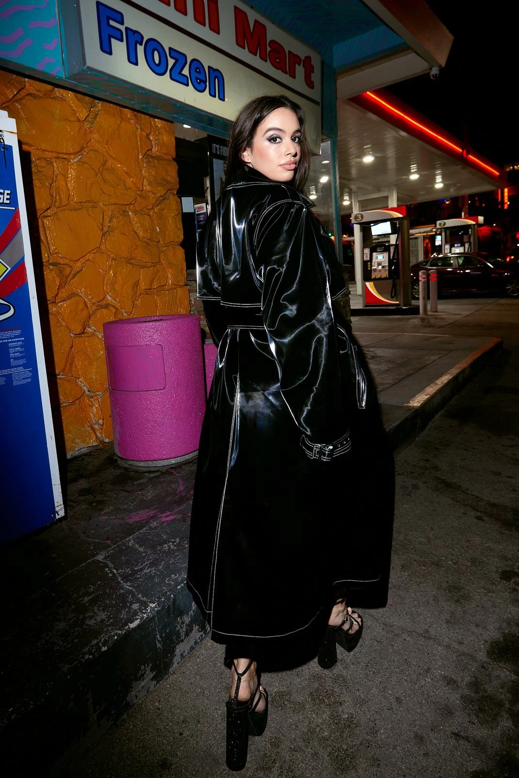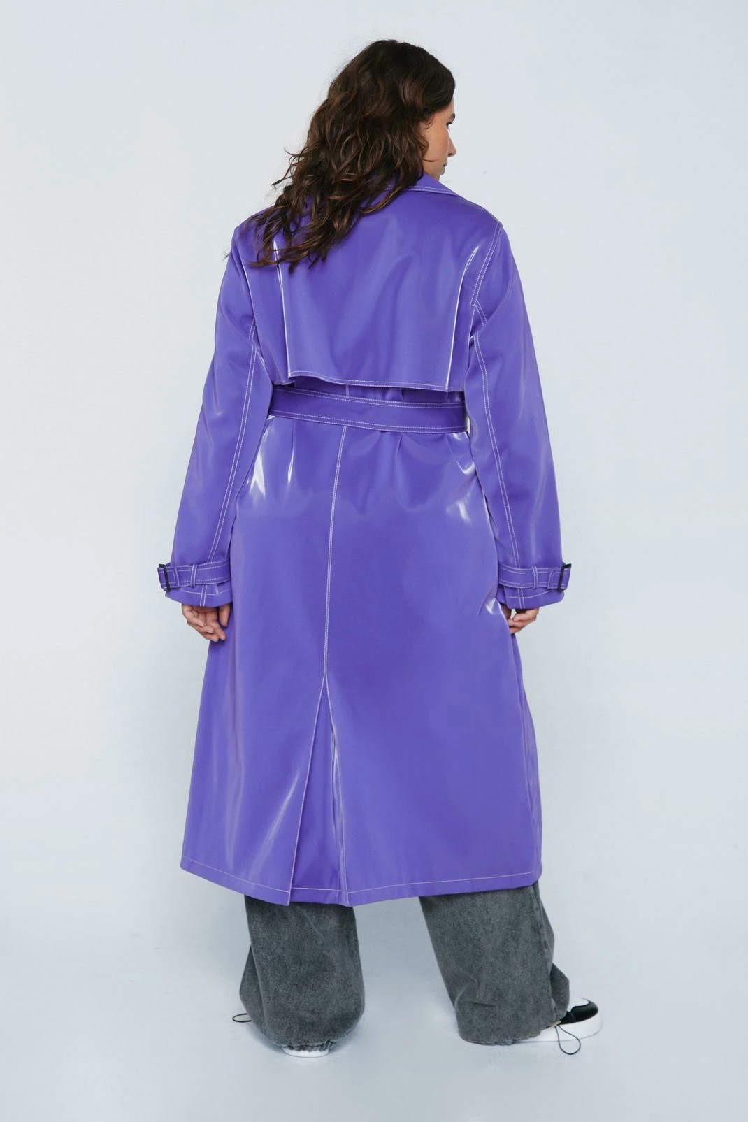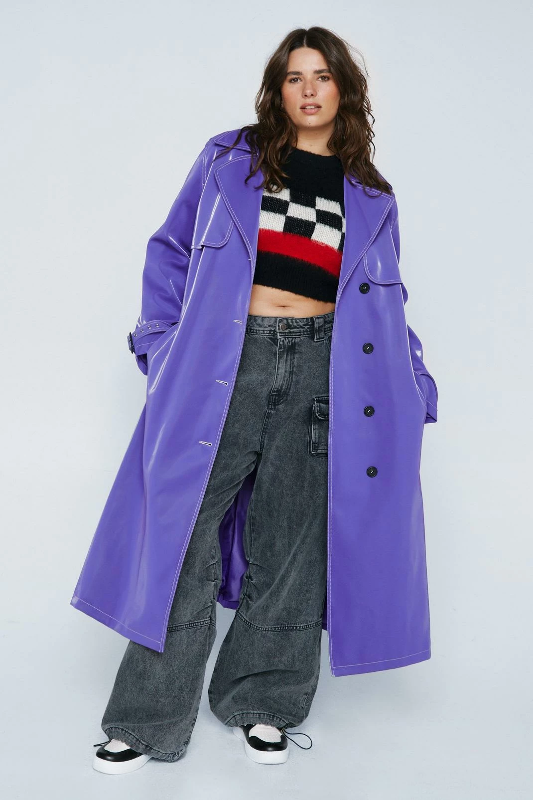 Come rain or shine. Brave the weather with our plus size high shine belted trench coat.