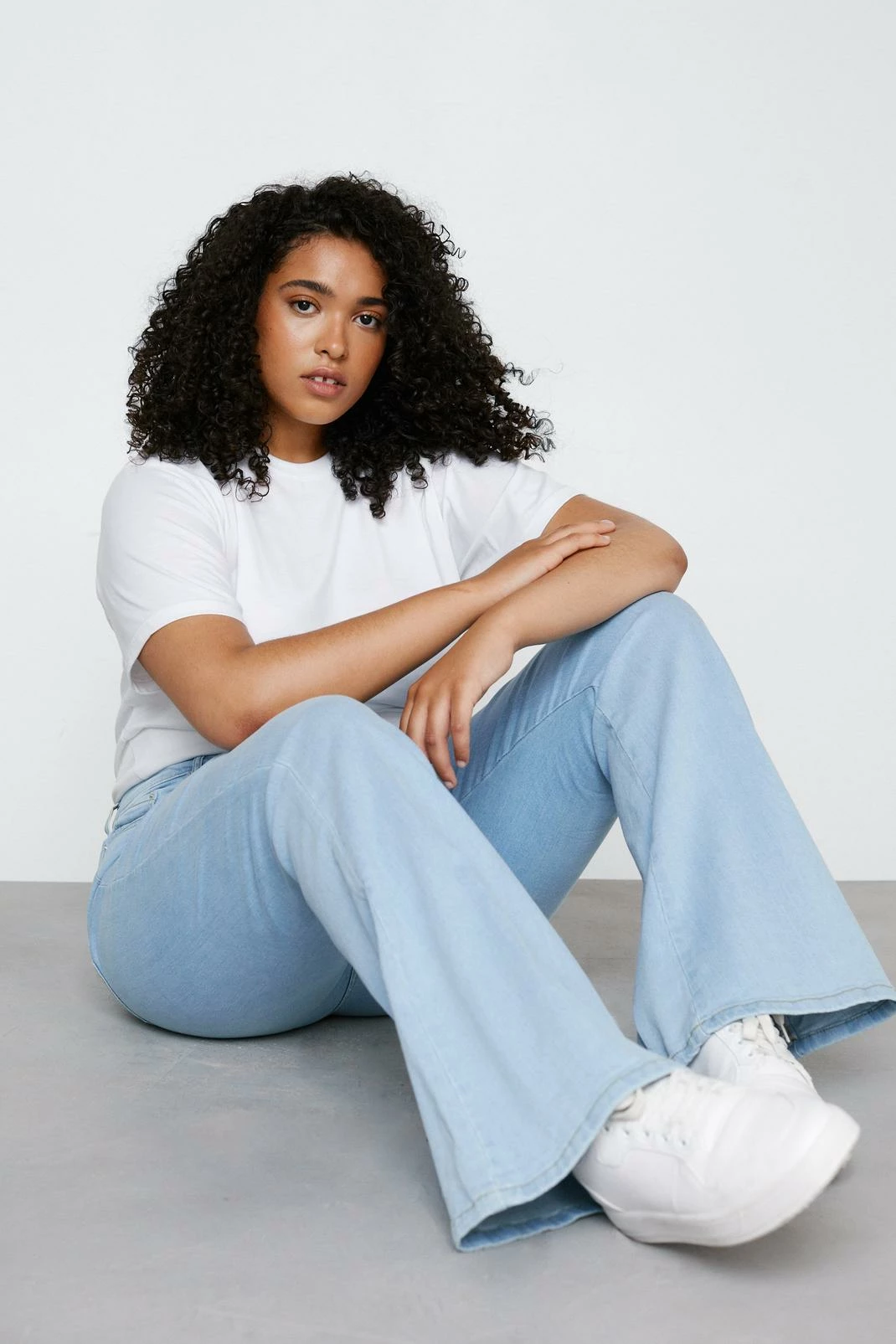 Denim moments. Style with a crew neck T-shirt, and sneakers.