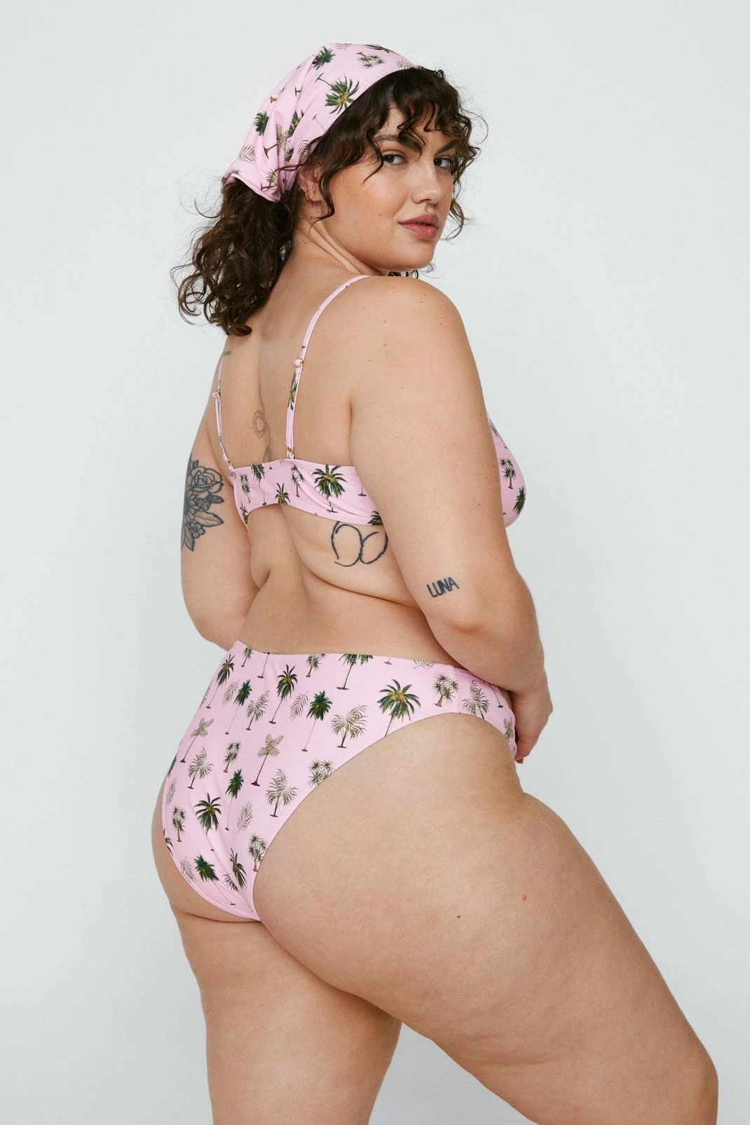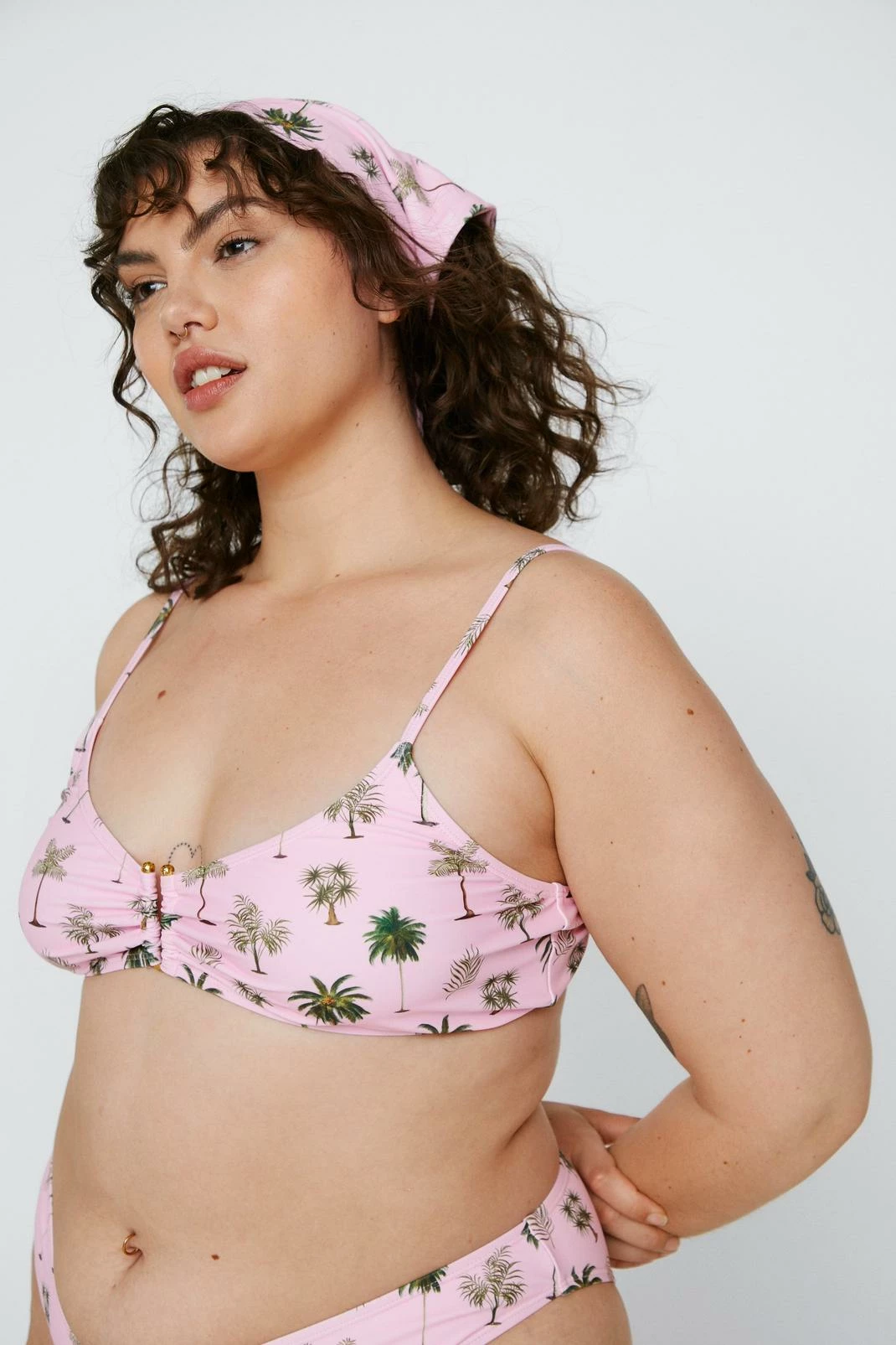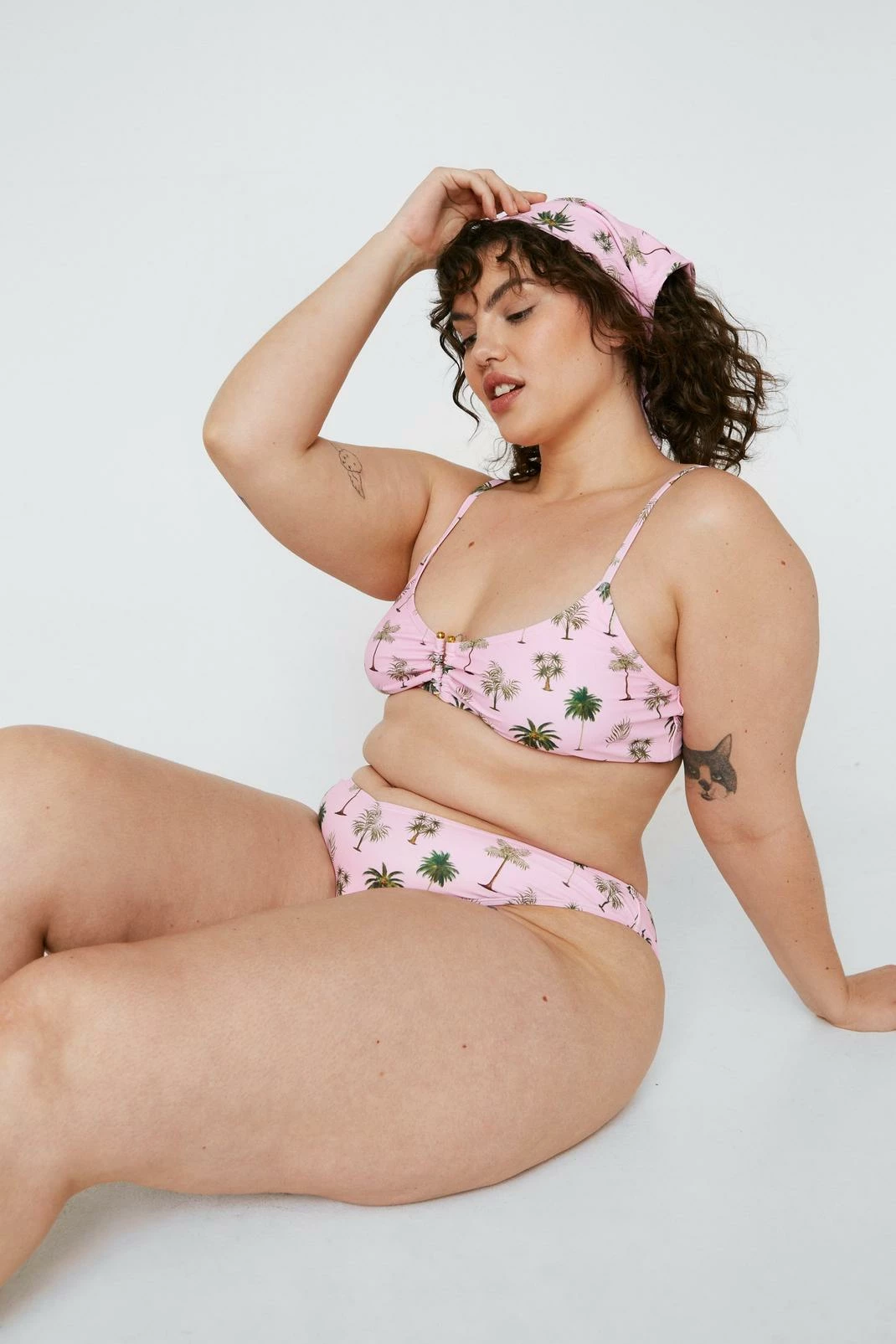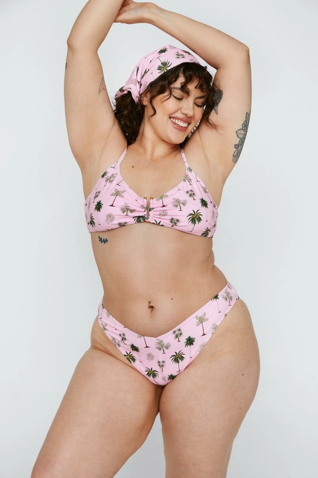 - Plus Size Recycled Palm Print Bikini 3 Piece Set
