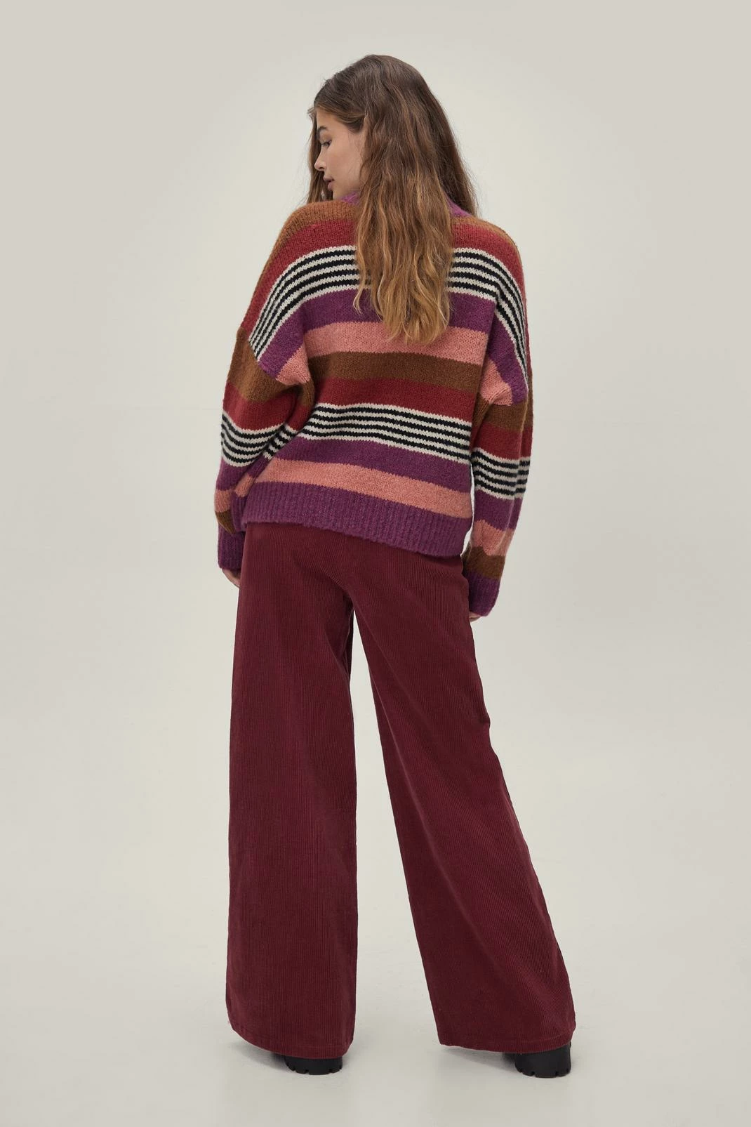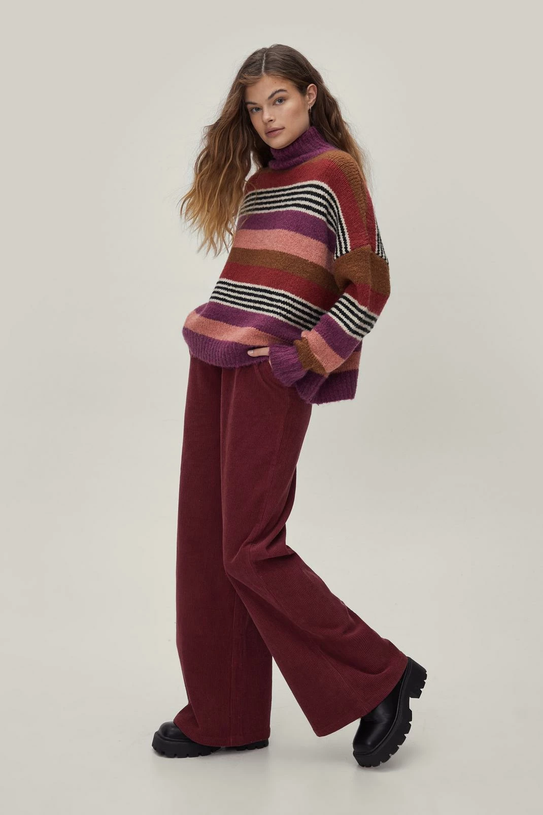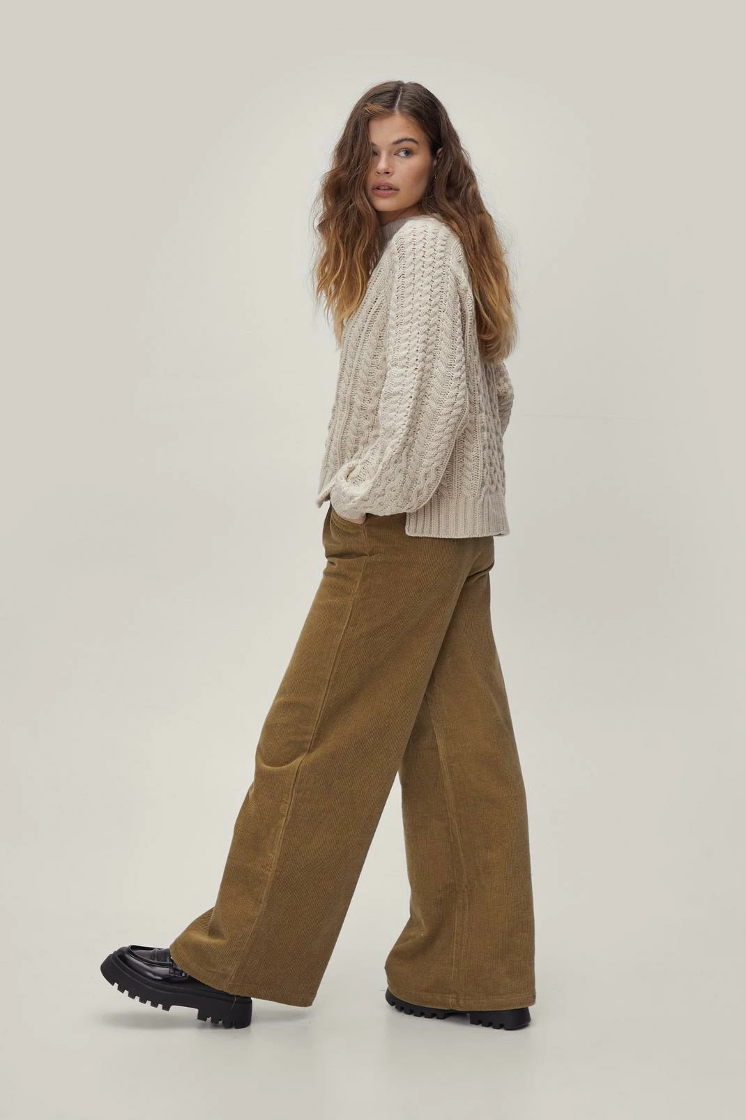Cut the cord. These pants come in a soft, durable corduroy fabric and feature a relaxed, full-length, wide leg silhouette, zip fly closure, front pockets, belt loops, dart front detailing, a high waisted fit, and a distinct, ribbed corduroy design throughout. Style with a graphic t-shirt and chunky boots.