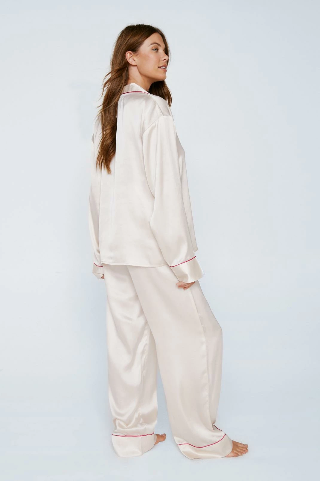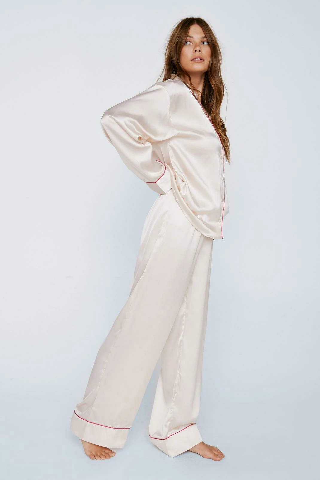 Sweet dreams. Feel fancy in our supple satin heart pocket pajama set. Pairs well with fresh sheets and weekend lie-ins.