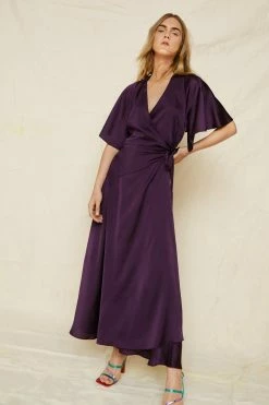 - Satin Angel Sleeve Tie Side Maxi Dress