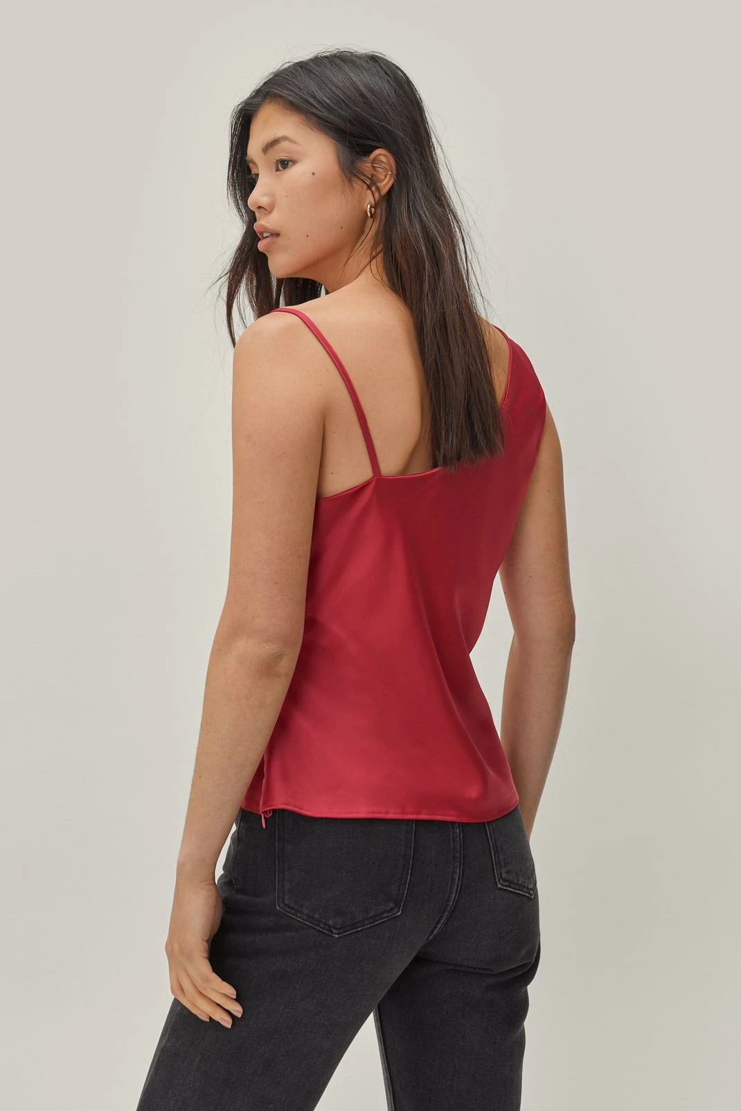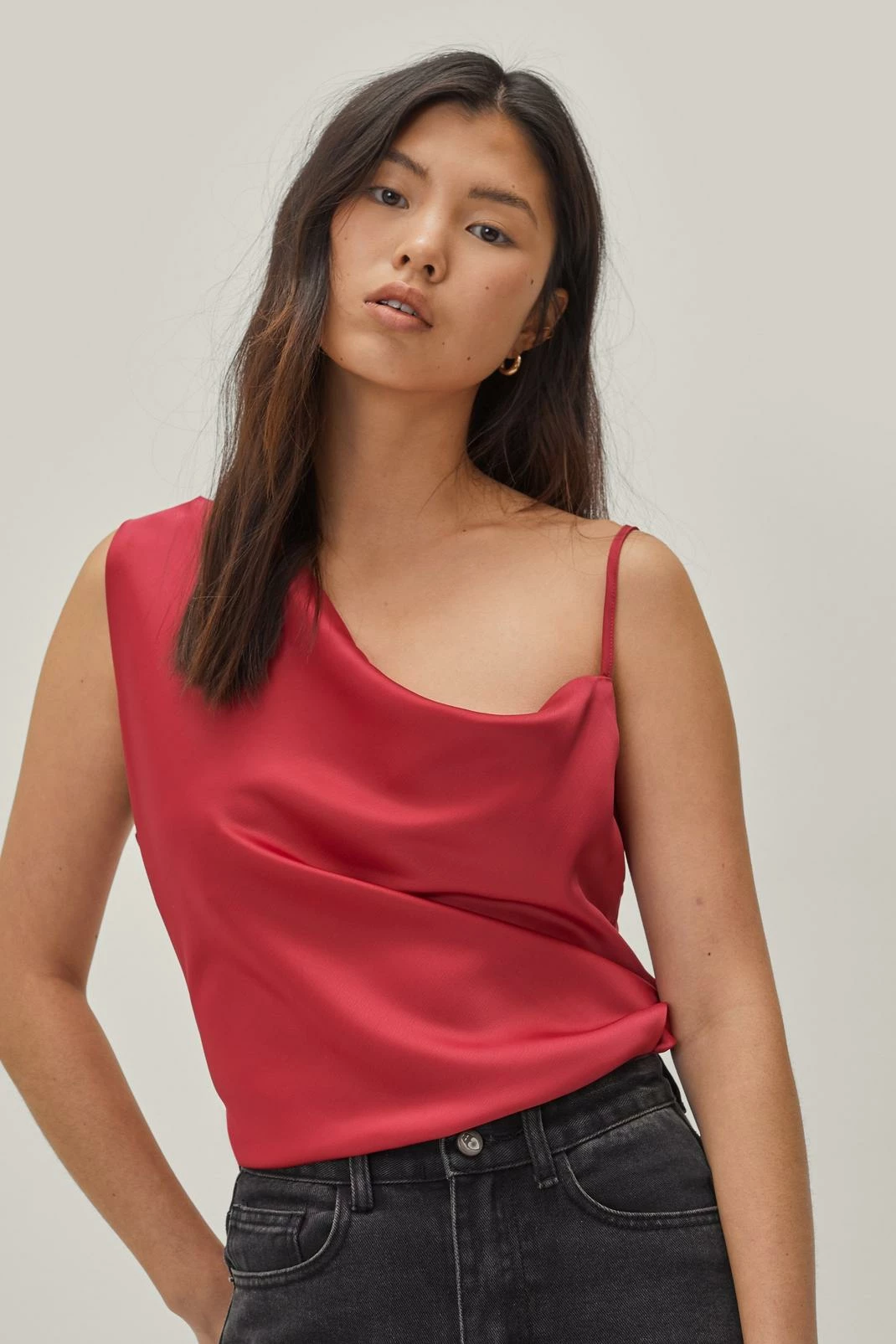 - Style: Satin Asymmetric Cowl Neck Cami