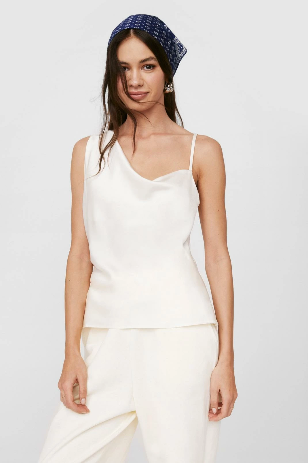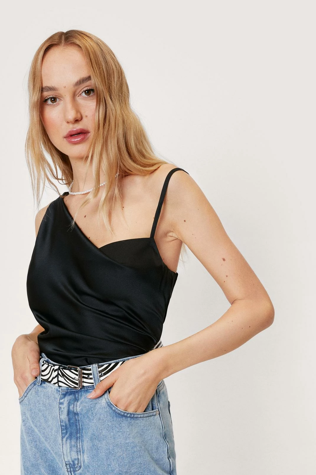 TTYL to our to-do list. This top comes in silky soft satin and features an asymmetric, cowl neckline which drapes elegantly across your décolletage, a relaxed silhouette, and adjustable straps. Looks great with jeans, shorts, a winter coat, whatever you’re feeling that day.