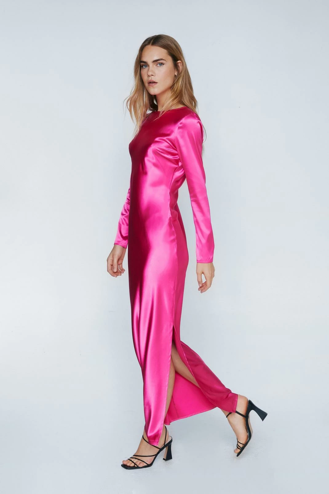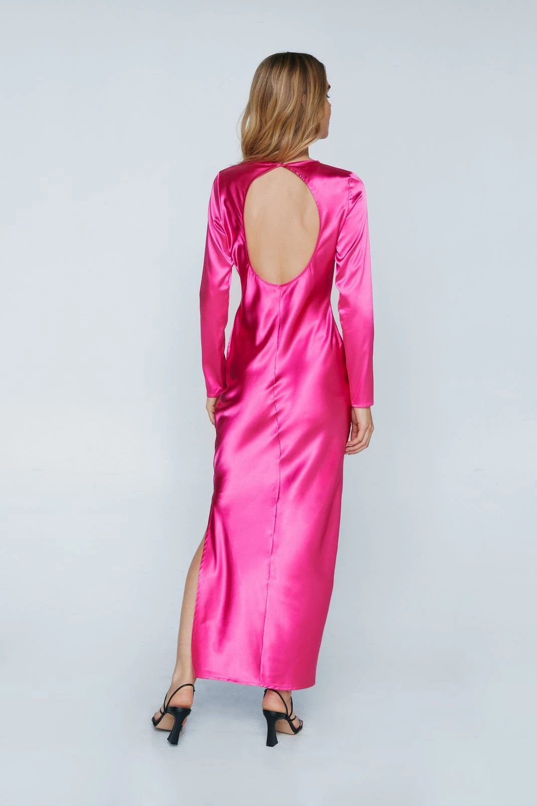 Going to great lengths. Our satin open back midi dress is perfect for any occasion. Style with heels to dress up or boots to dress down.