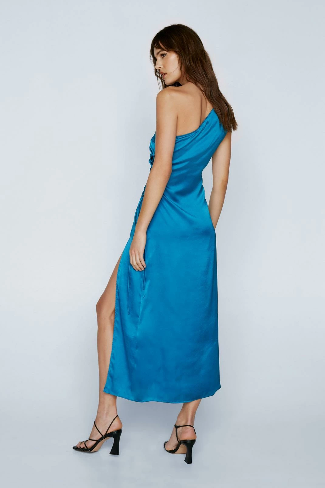 A moment for the dress. Feel fancy when you slip into our maxi dress, made in a high quality satin fabric, with a one shoulder design, cheeky leg split, and lace up insert. Pairs well with strappy heels for a party or occasion look you’ll keep coming back to.