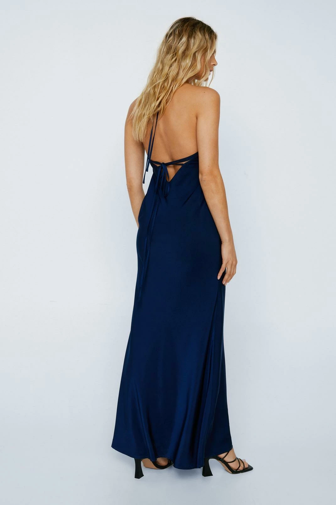 Turn heads. Feel fierce in our maxi dress, made in high quality satin, with a stelar straight fit, and a stiking plunge neckline. Pairs well with strappy heels for a look perfect for wedding guest days, prom nights, and upcoming occasions.