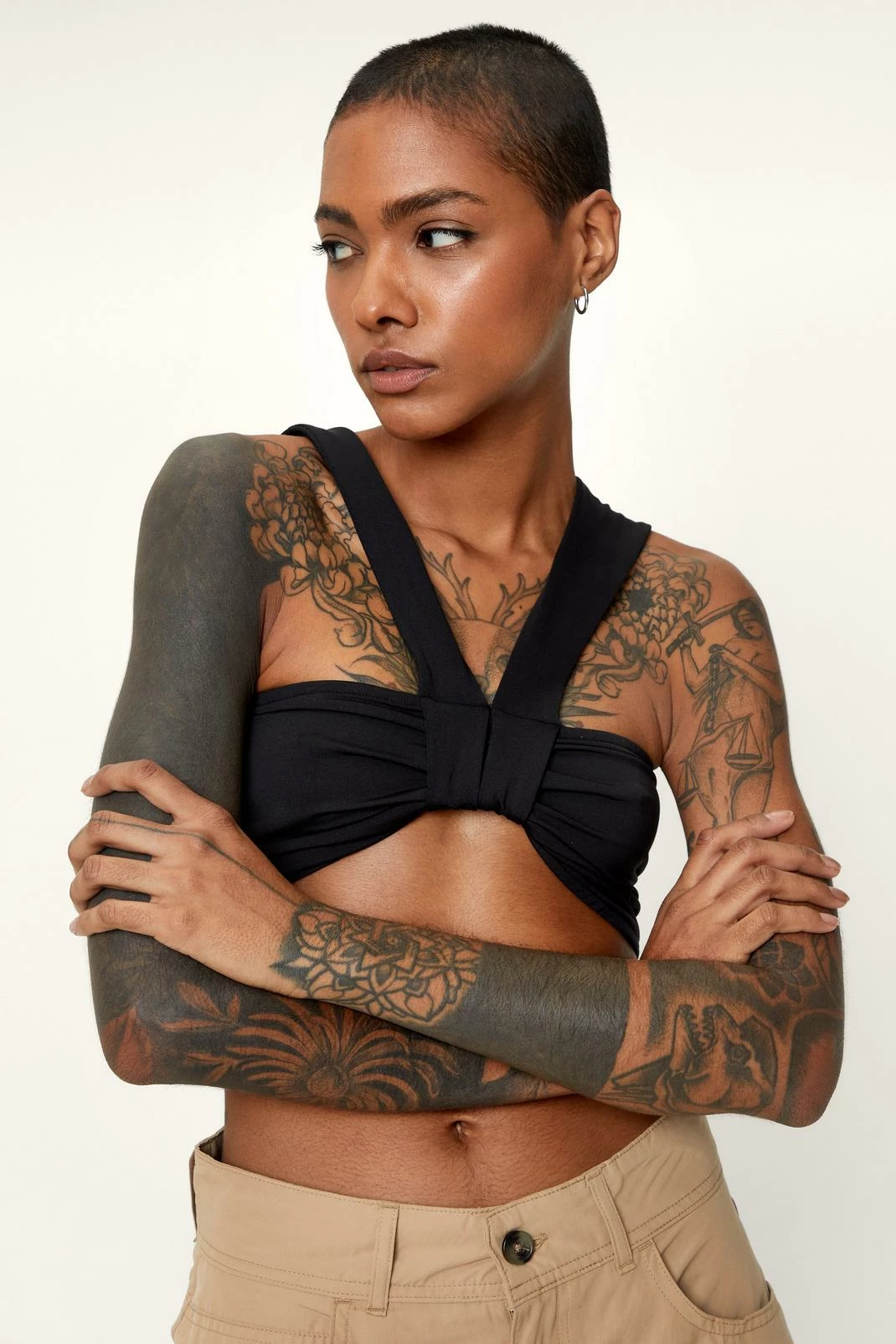 92% POLYESTER, 8% ELASTANE. WASH WITH SIMILAR COLOURS.