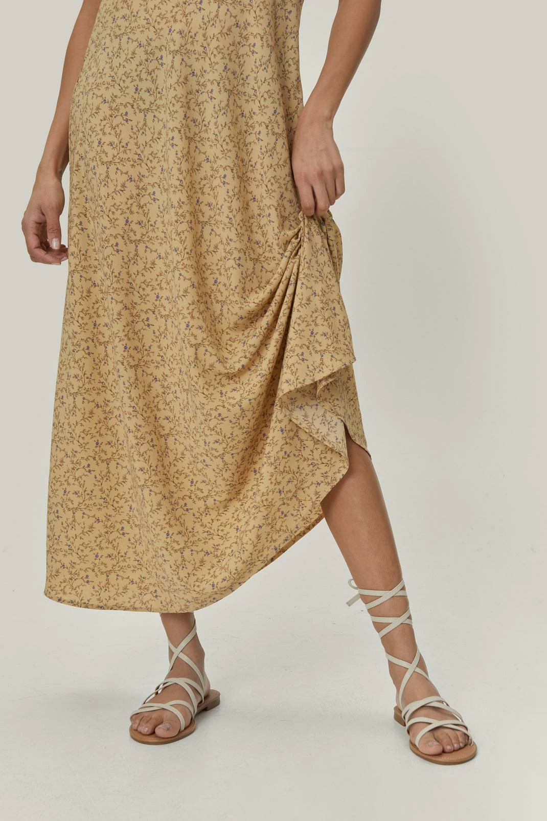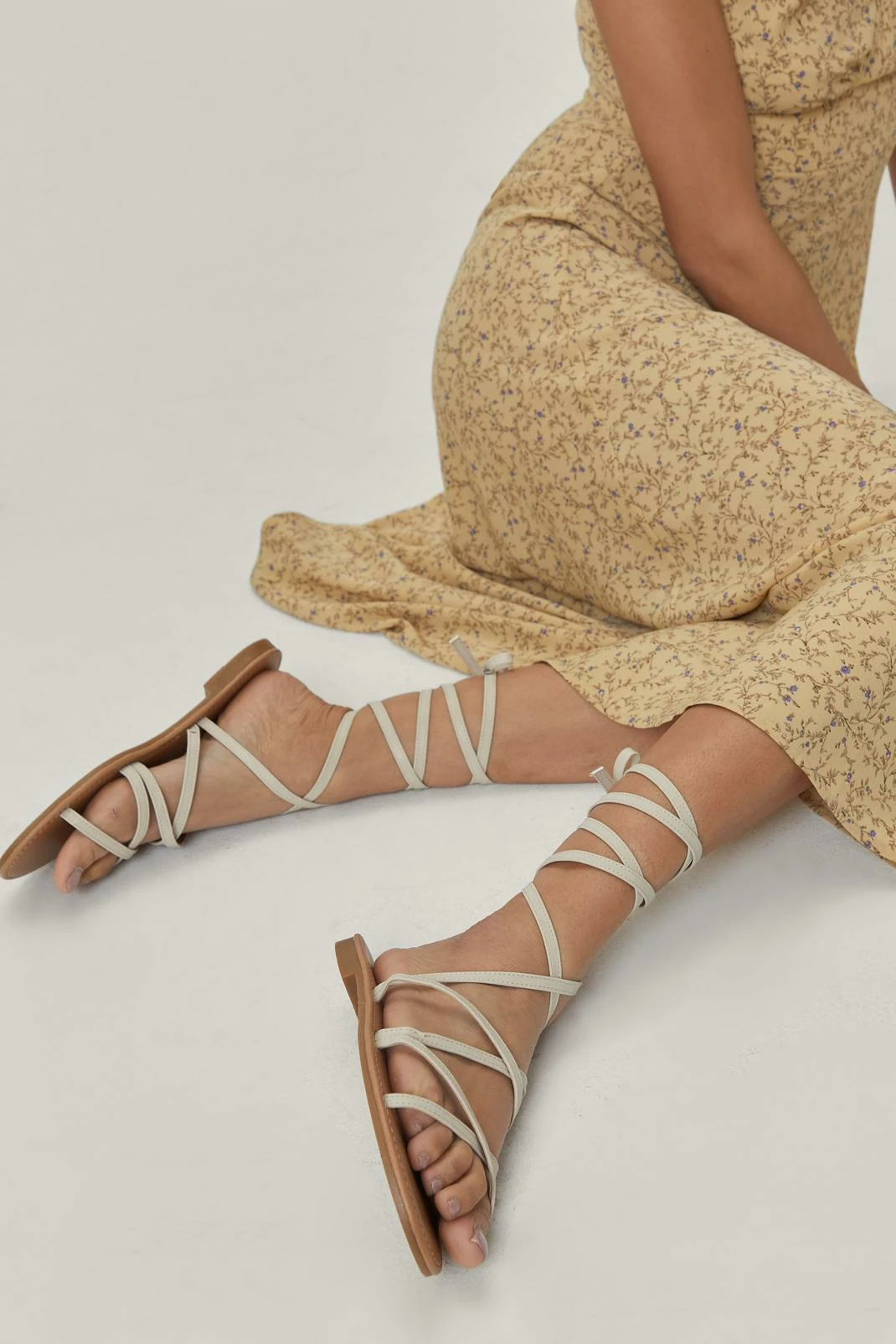 These sandals feature a flat faux leather sole, round open toe, and strappy design with bow tie closure. Channel your inner Grecian goddess by wearing yours with billowing midi silhouettes and loud printed maxi dresses.