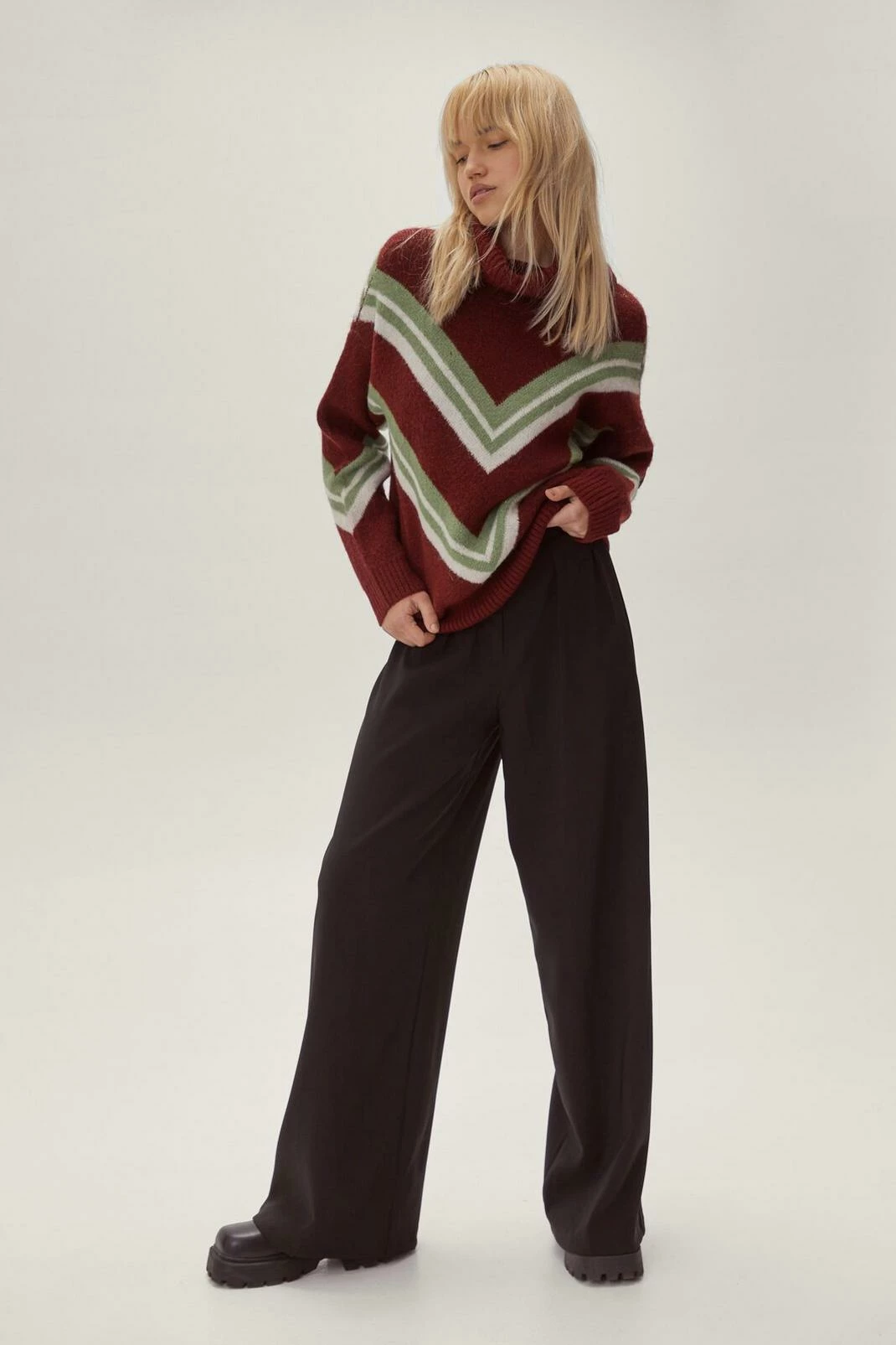Party pants. These pants come in luxurious, thick twill fabric and feature a wide-leg design that drapes straight down from the hips to the ankle, a high-waisted silhouette that sits just above the hips, hidden zip-front closure, and tailored pleated detail throughout. Pair yours with a simple t-shirt.