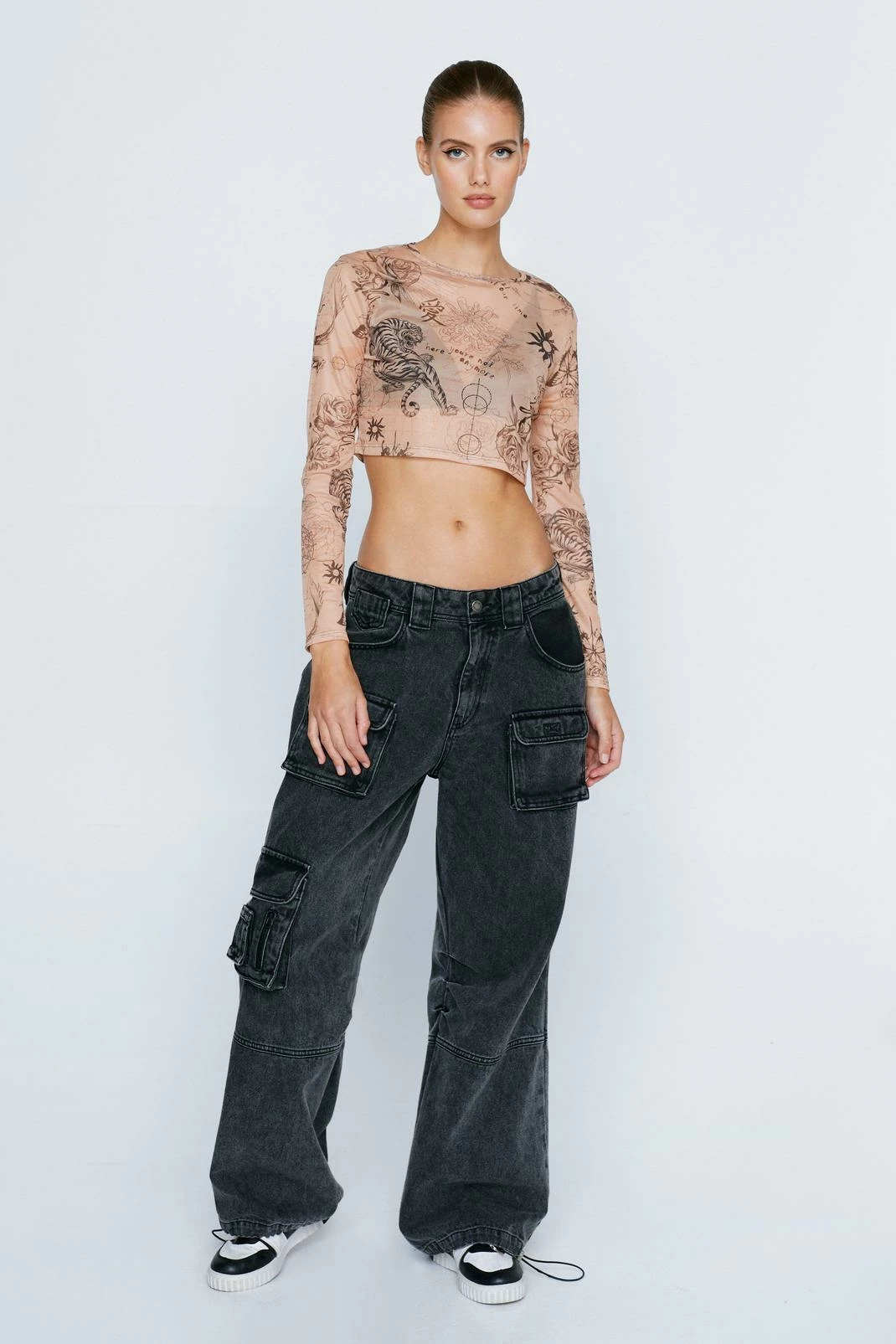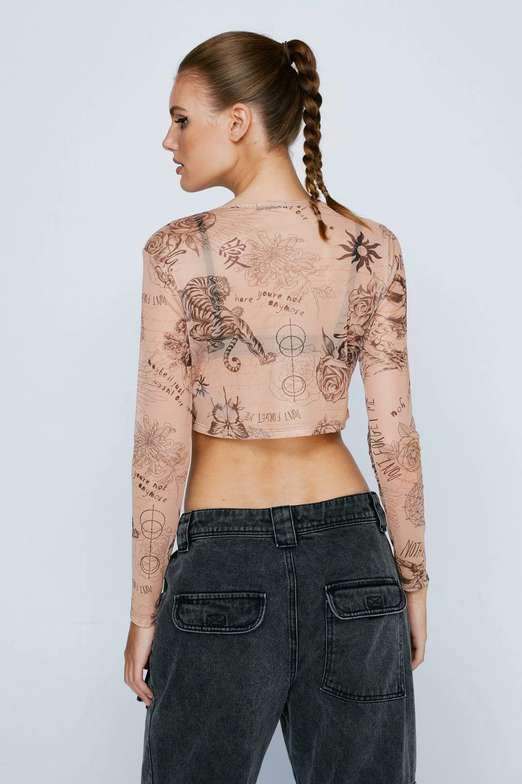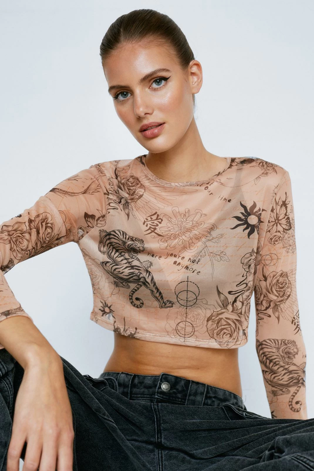 Get inked. This mesh top features a tattoo print and can be layered under a dress or styled with jeans.