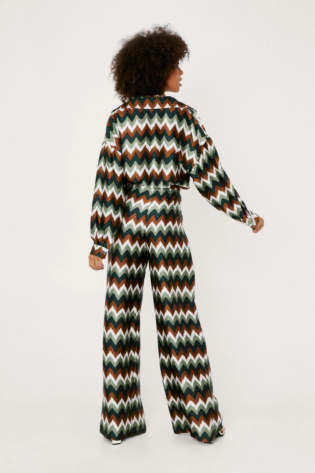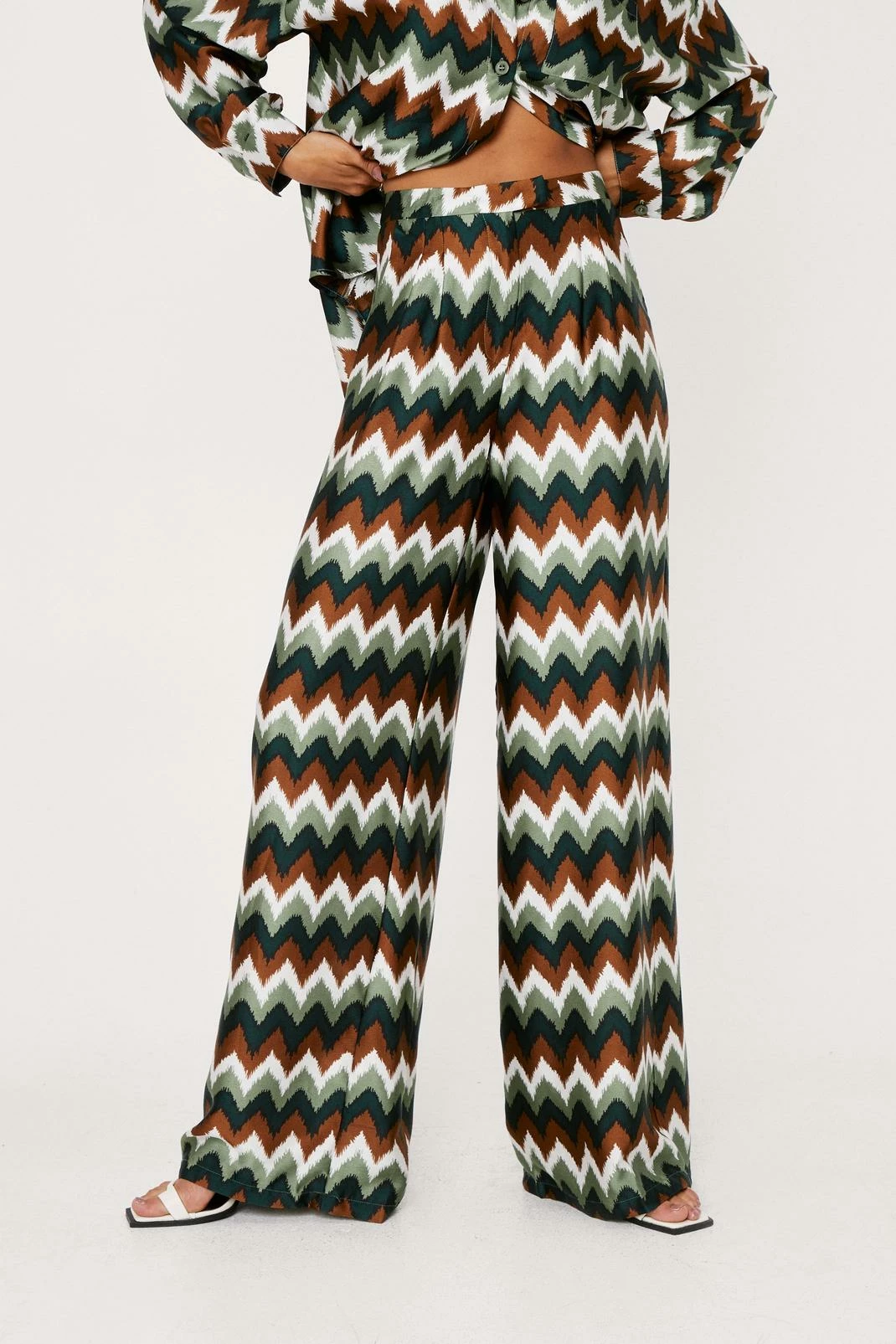 - Style: Zig Zag Print Satin Wide Leg Pants